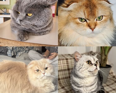 Nous sommes un petit élevage familial passionné par les Scottish Fold. Nos chatons grandissent dans la maison, entourés d’amour, de jeux et de câlins, pour devenir des compagnons doux, sociables et équilibrés.